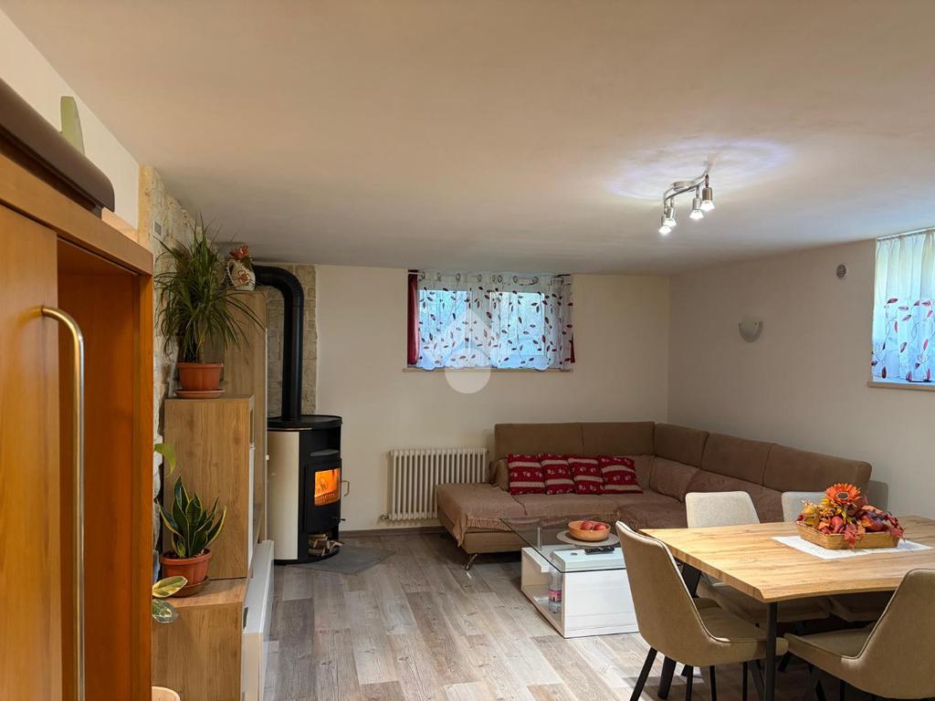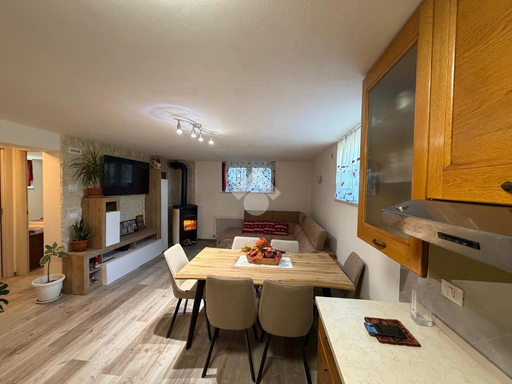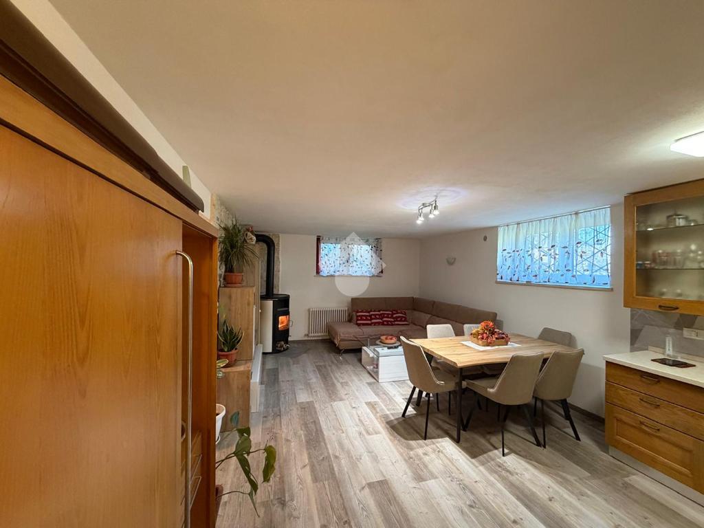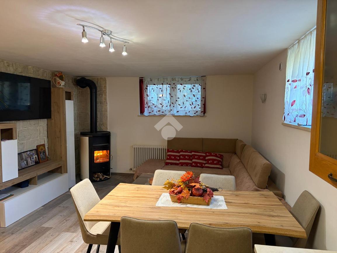 L’immobile si apre su una spaziosa zona giorno, composta da soggiorno con angolo cottura e stufa a legna, in ingresso troviamo anche un comodo ripostiglio.